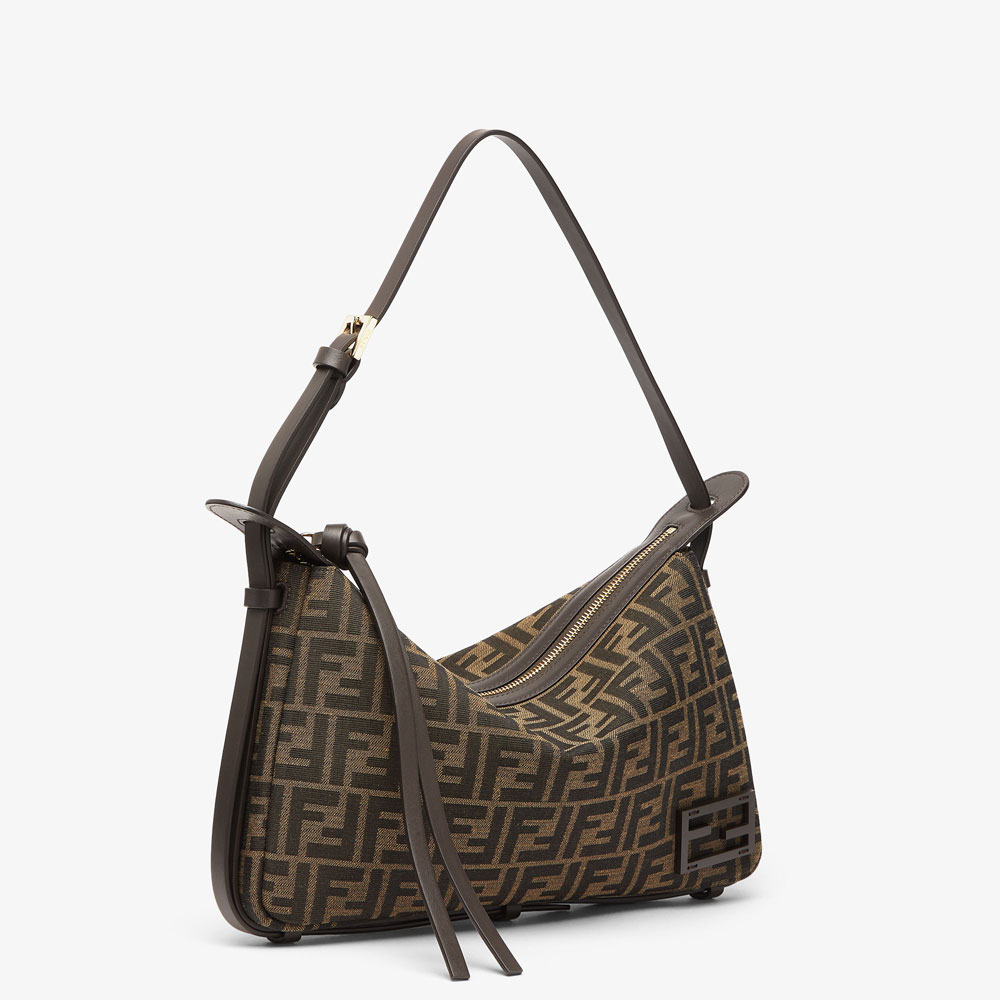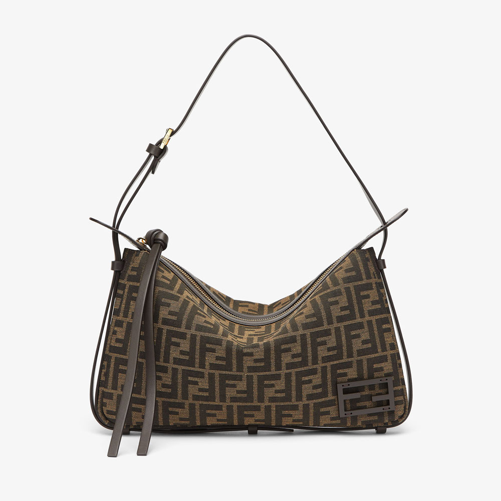Medium Simply Fendi bag, a soft shoulder bag presented at the Fall-Winter 2024/25 fashion show, named after its elegant and essential design inspired by a 1990s archive style.Made of jacquard fabric with iconic brown FF motif.