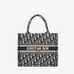 The Dior Book Tote is an original creation introduced by Dior's Creative Director. Maria Grazia Chiuri. and has become a staple of the Dior aesthetic. Designed to hold all the daily essentials. it is fully embroidered with the blue Dior Oblique motif. and further adorned with the 'CHRISTIAN DIOR PARIS' signature on the front. The small tote exemplifies the House's signature savoir-faire and may be carried by hand.