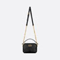New for the Summer 2024 season, the Dior Caro Top Handle Camera bag is a sophisticated and practical design. Crafted in black calfskin, the small model is elevated by the originality of the Macrocannage stitching's quilted effect. The bag features a zip closure and an antique gold-tone metal CD signature. The detachable top handle with Christian Dior Paris signature is completed by the removable chain shoulder strap with CD signature links, allowing it to be carried by hand, on the shoulder, or crossbody, for both day and evening wear.