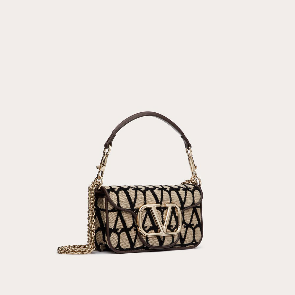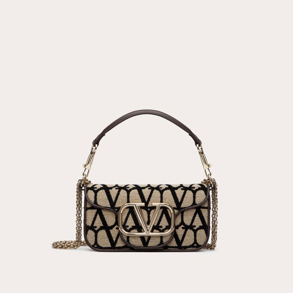 Valentino Garavani Loco small shoulder bag in Toile Iconographe with metallic Vlogo Signature detail.