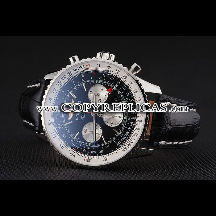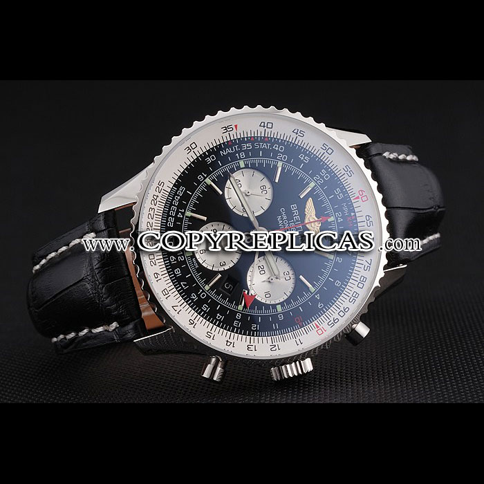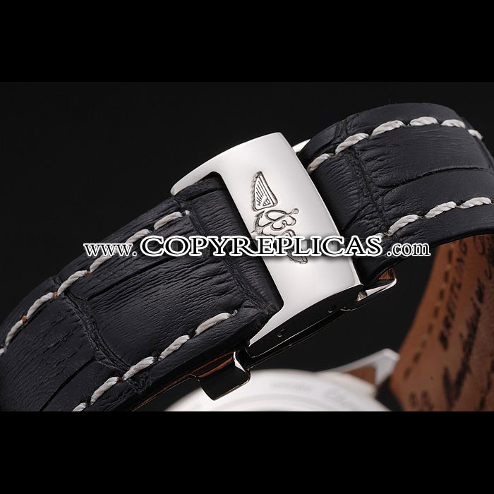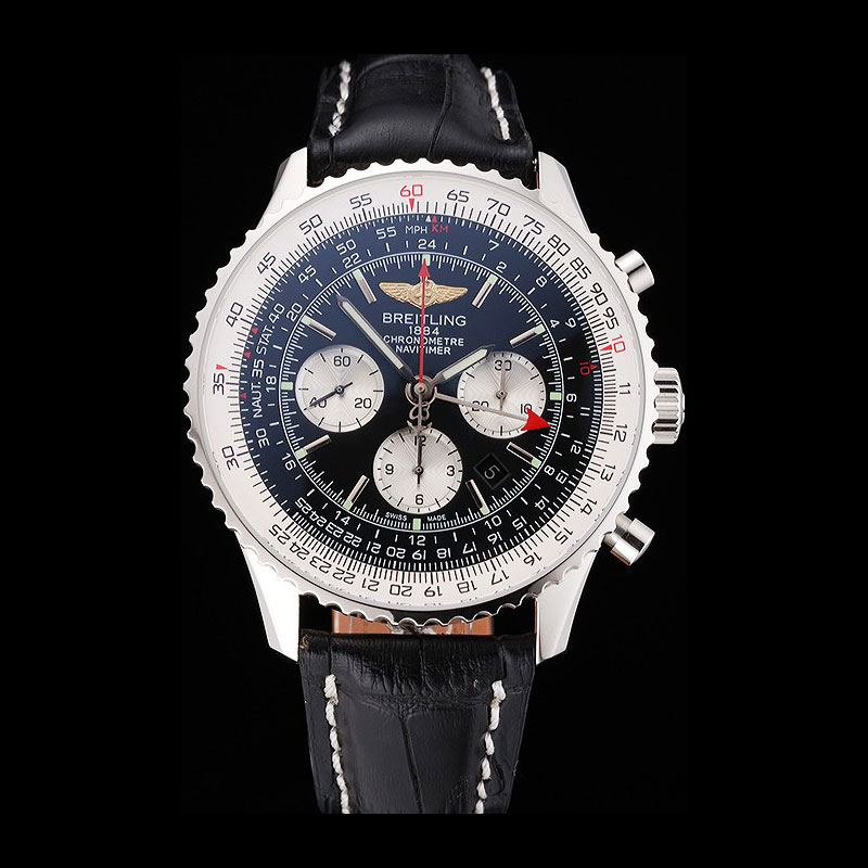 Movement : Kinetic (Automatic) Quality : Swiss ETA Case : Polished stainless steel case Back : Polished stainless steel snap-in back with transparent mechanics-revealing back and Breitling engravings Bezel : Cutwork polished stainless steel bezel with tachymeter Crown : Breitling logo engraved polished stainless steel cutwork crown with a push-button crown on either side of it Bracelet : Cuir Veritable heat embossed black crocodile leather strap with white thread stitching and Breitling logo engraved polished stainless steel fold-over clasp Band Type : Leather Watch Clasp : Flip Clasp Chronograph : Yes Glass : Sapphire Crystal Color : Black Dial Color : Black Gender : Men Diameter : 54 x 48 mm Bracelet Length : 200 x 24 mm Case Thickness : 16 mm Shipping Size : Small