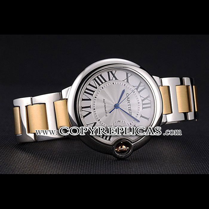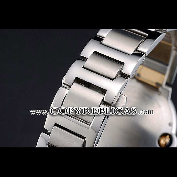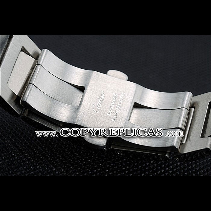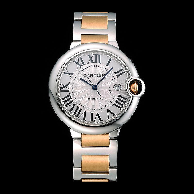 Movement : Kinetic (Automatic) Quality : Swiss ETA Case : Polished stainless steel case Back : Brushed stainless steel screwed down back with Cartier inscription Bezel : Polished stainless steel bezel Crown : Case integrated sapphire crystal stud polished stainless steel cutwork crown Bracelet : Polished stainless steel and 18k yellow gold plated link bracelet with polished stainless steel push-release butterfly clasp Band Type : Stainless Steel Watch Clasp : Butterfly Clasp Glass : Sapphire Crystal Dial Color : Silver Gender : Men Diameter : 44 x 42 mm Bracelet Length : 195 x 20 mm Case Thickness : 13 mm Shipping Size : Small