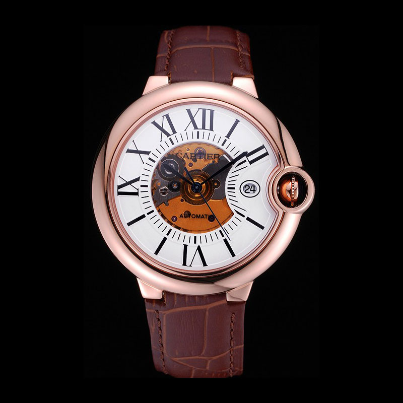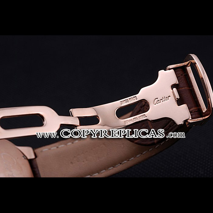 Movement : Kinetic (Automatic) Quality : Swiss ETA Case : 18k rose-gold plated case Back : 18k rose-gold plated screwed down back with Cartier inscription Bezel : 18k rose-gold plated bezel Crown : 18k rose-gold plated crown encased in protective ring Bracelet : Cartier heat embossed pink crocodile leather strap with 18k rose-gold plated fold-in snap clasp Band Type : Leather Glass : Sapphire Crystal Dial Color : White Gender : Men Diameter : 44 x 42 mm Bracelet Length : 200 x 20 mm Case Thickness : 13 mm Shipping Size : Small