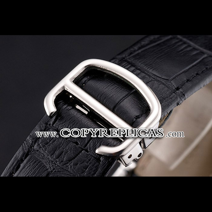 Movement : Kinetic (Automatic) Quality : Swiss ETA Case : Polished stainless steel case Back : Polished stainless steel snap-in back with Cartier engravings Bezel : Diamond encrusted polished stainless steel bezel Crown : Blue sapphire stud polished stainless steel cutwork crown Bracelet : Cartier and product code heat embossed black crocodile leather strap with a brushed stainless steel fold-in clasp Band Type : Leather Watch Clasp : Flip Clasp Glass : Sapphire Crystal Color : Black Dial Color : White Gender : Men Diameter : 50 x 42 mm Bracelet Length : 195 x 22 mm Case Thickness : 11 mm Shipping Size : Small