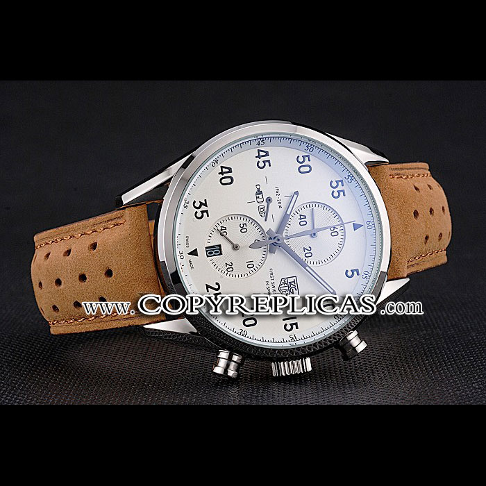Tag Heuer Carrera SpaceX-7 White Dial Silver Stainless Steel Case Brown Suede Strap TG6673