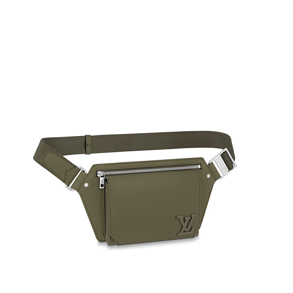 The Louis Vuitton Sling Bag is the on-trend hands-free way to carry everyday necessities. This version is styled in fine-textured LV Aerogram leather. evoking the House's travel heritage and the early days of airmail with details like the beveled corners on the front flap. The LV monogram in matching khaki metal adds a low-key signature.