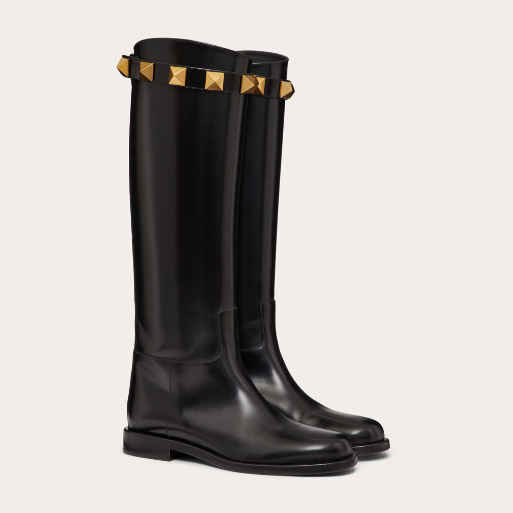 Valentino Calfskin Leather Roman Stud Boot 15mm 1W2S0ER5ZWM 0NO