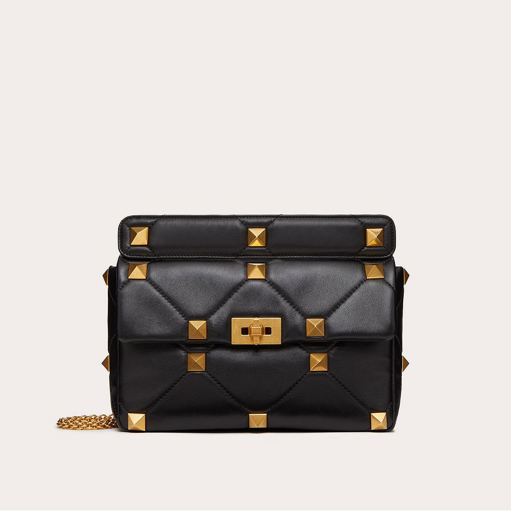 Large lambskin nappa Valentino Garavani Roman Stud The Shoulder Bag with chain.