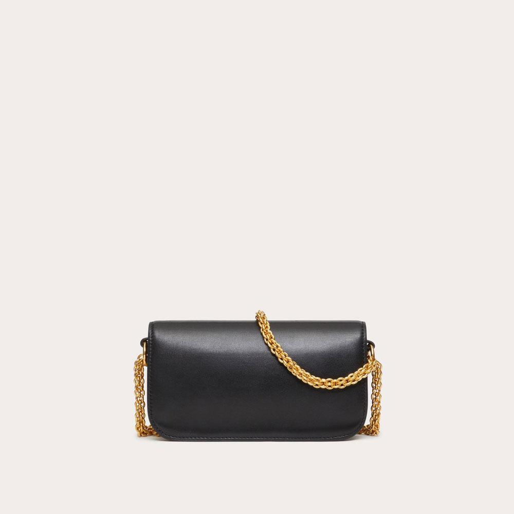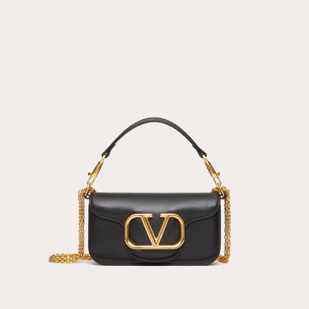 Valentino Garavani Loco women's small shoulder bag in calfskin leather with Vlogo Signature metallic element. Equipped with a detachable sliding chain strap and a removable handle, this accessory can be worn as a crossbody/shoulder bag or carried as a handbag