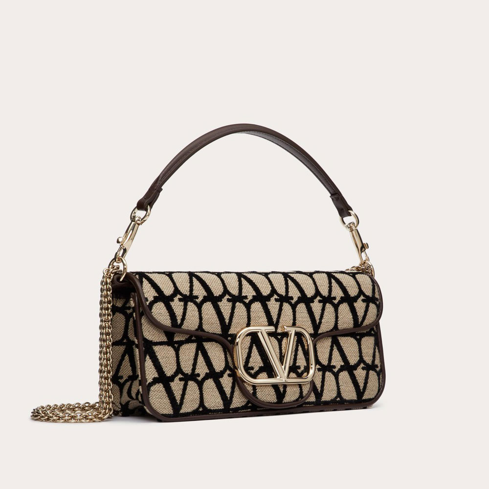 Valentino Garavani Loco shoulder bag in Toile Iconographe with metallic Vlogo Signature detail.