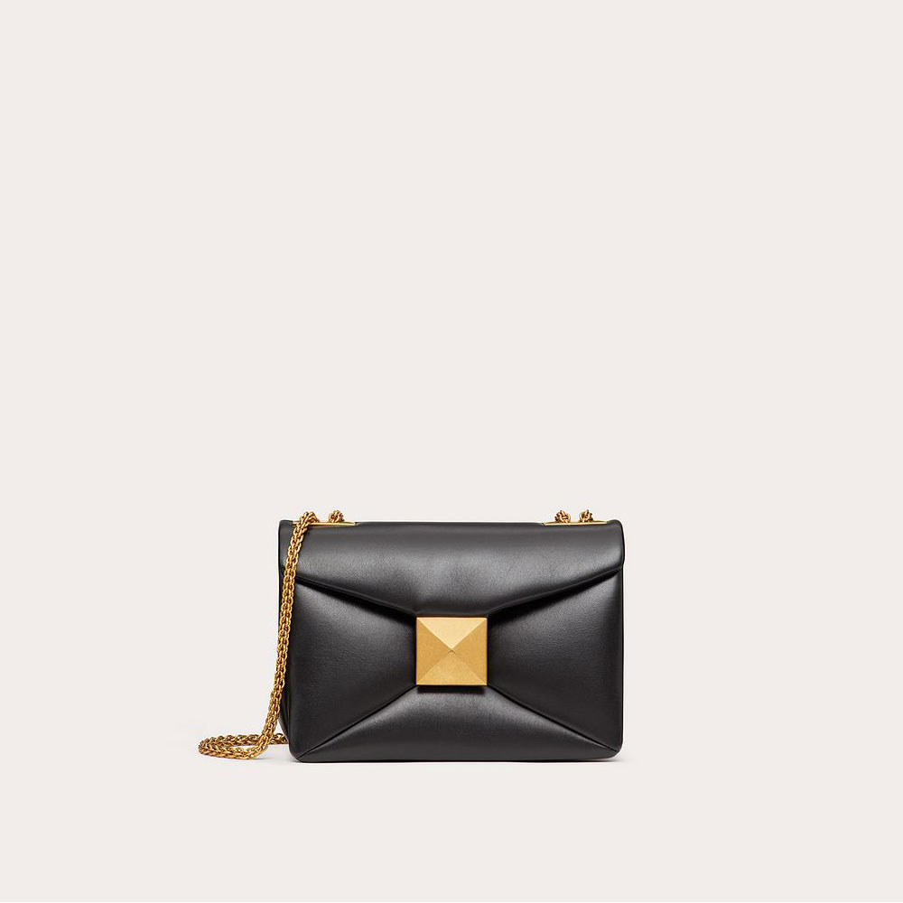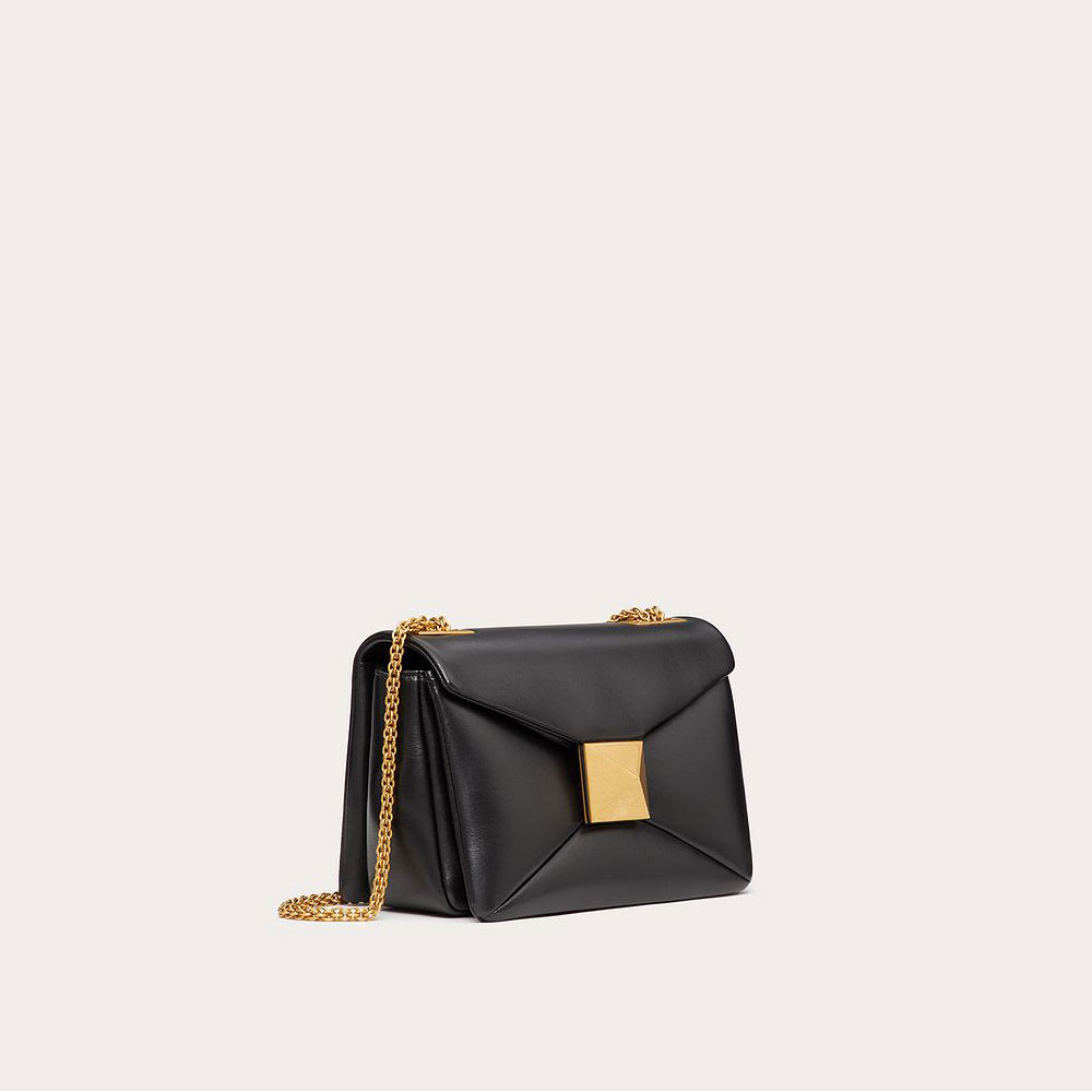 Valentino Garavani ONE STUD bag in Lambskin Nappa with chain. Clutch design decorated with maxi stud at the front.