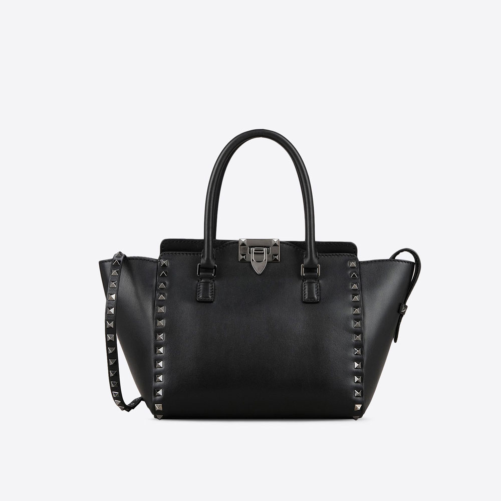 Valentino Garavani Rockstud Noir small double handle bag in calfskin