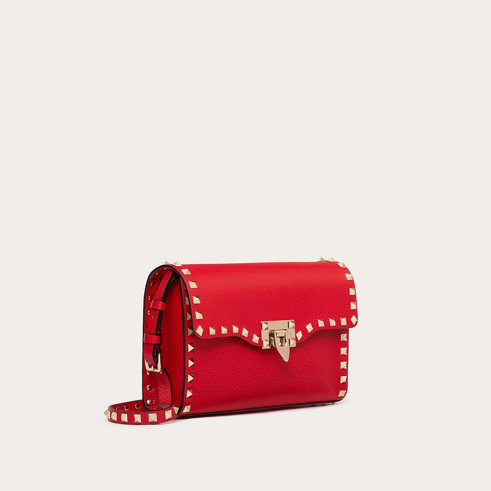 Small Valentino Garavani Rockstud grainy calfskin crossbody bag.