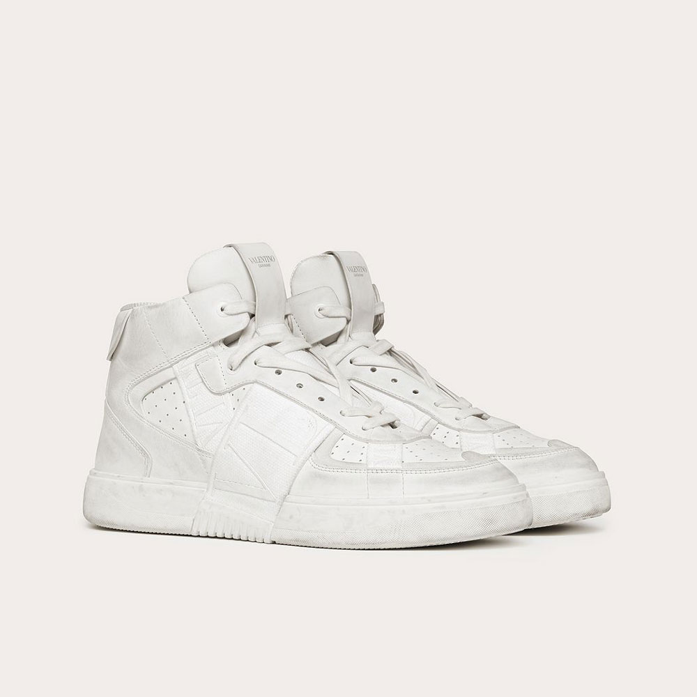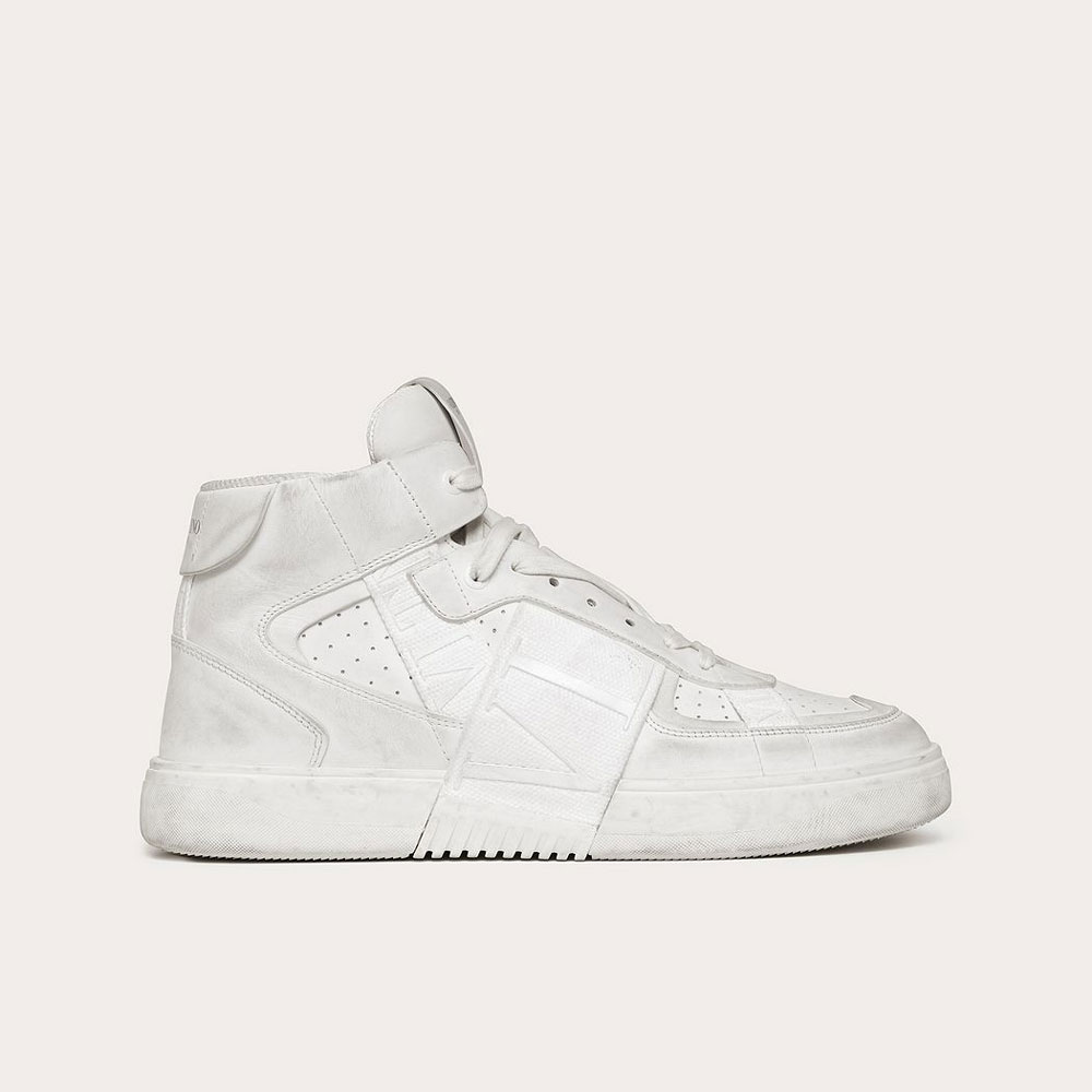Valentino Garavani mid-top calfskin VL7N sneaker with bands.