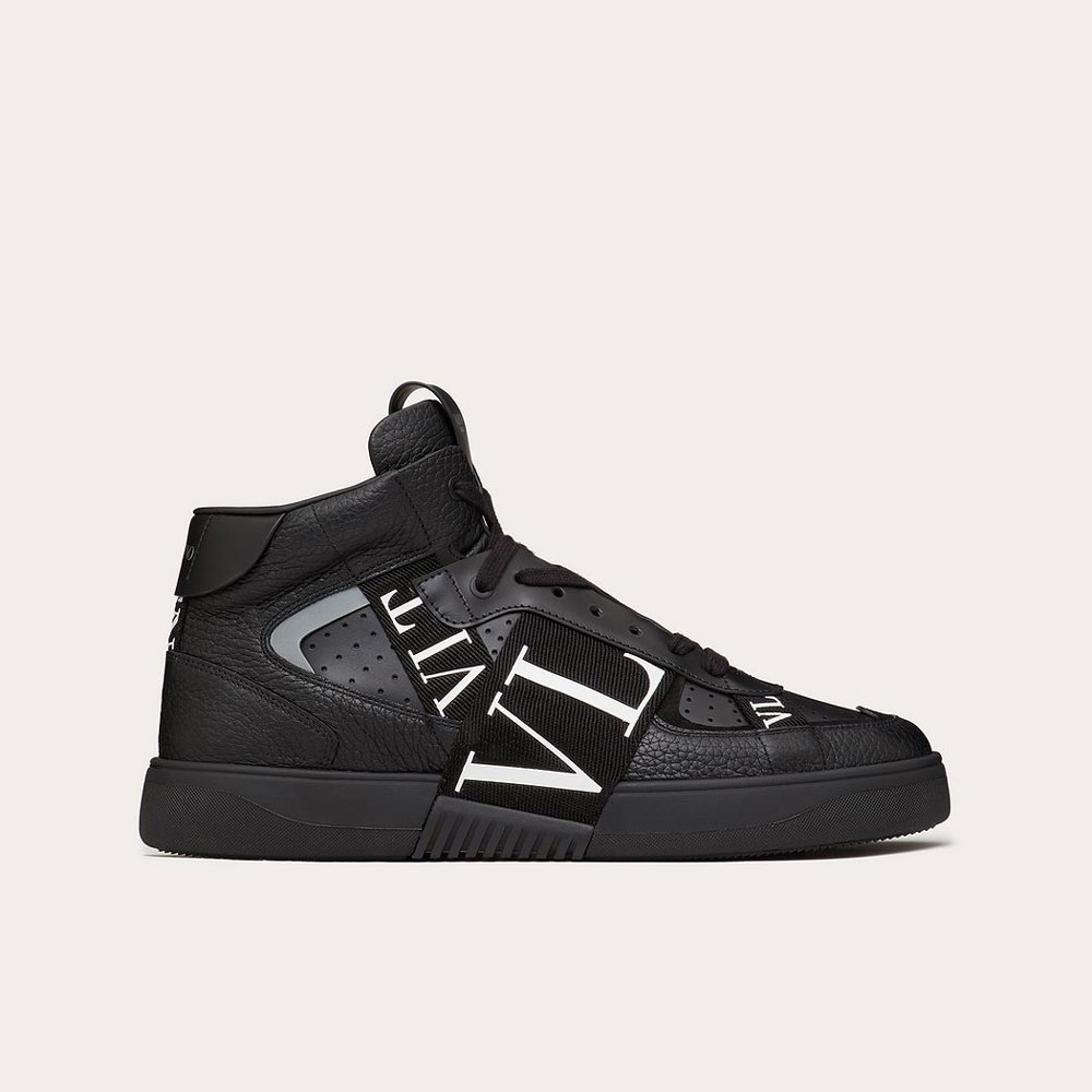 Valentino Garavani mid-top calfskin VL7N sneaker with bands.