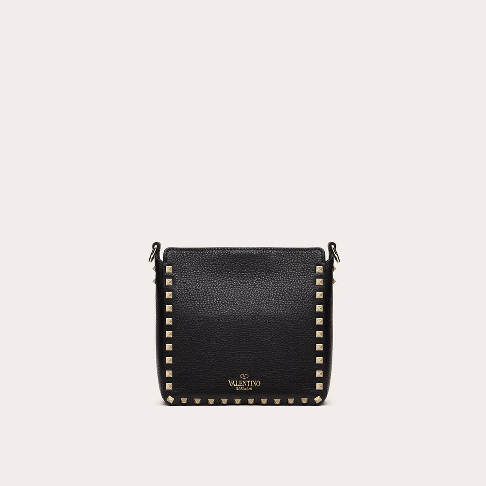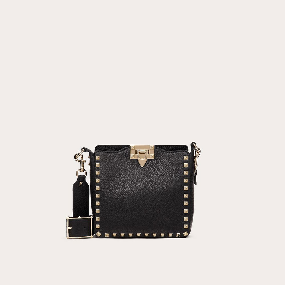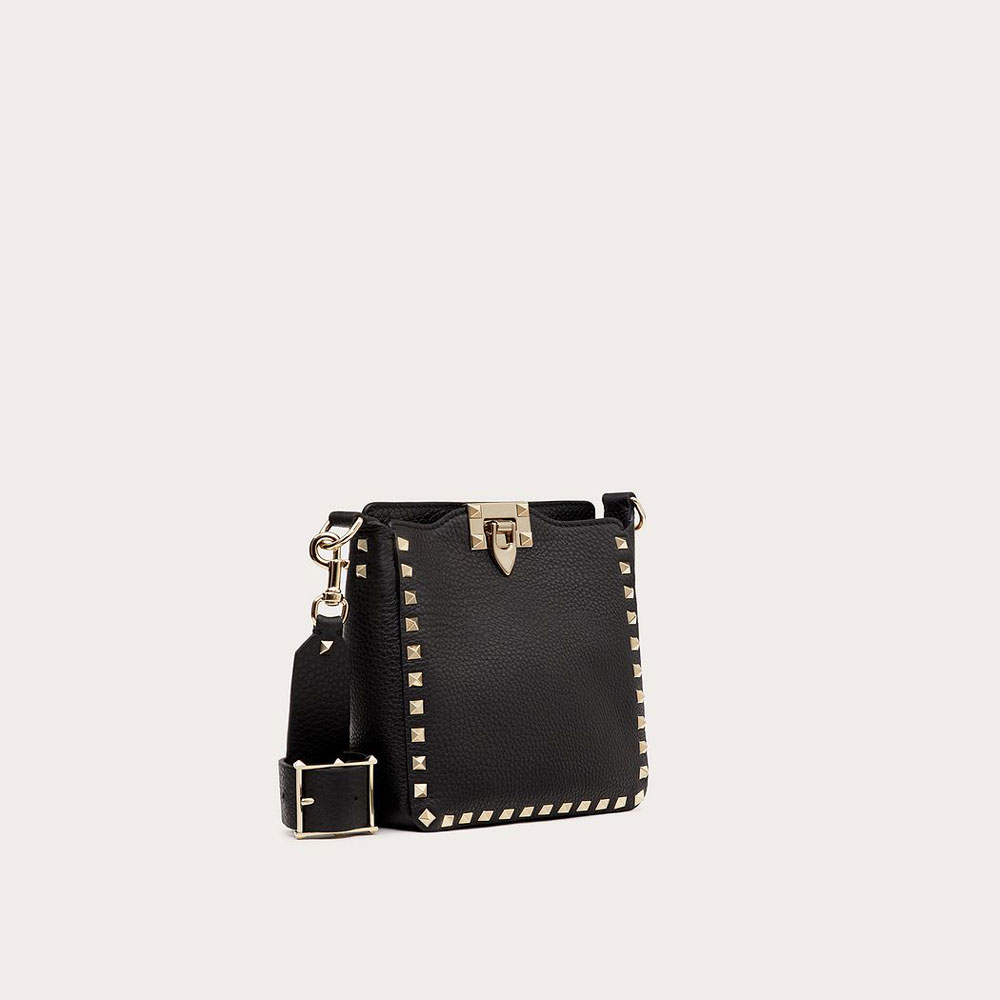 Mini Valentino Garavani Rockstud hobo bag in grainy calfskin leather.
