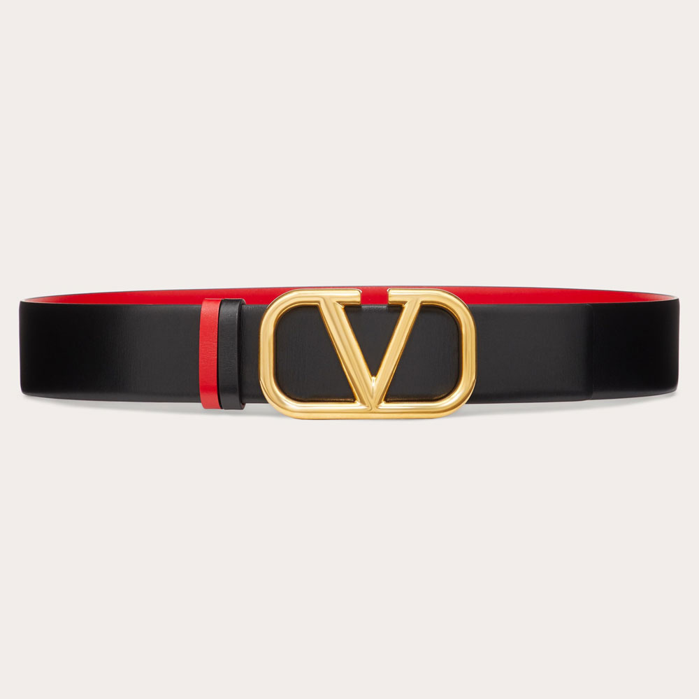 Elevate your outfit with the Valentino Reversible 40mm Vlogo Signature Belt in Black/Red. This sleek calfskin leather accessory features a stylish Vlogo Signature buckle in antique brass finish, adding a touch of luxury to any ensemble. Pair it with a chic black dress for a sophisticated look, or style it with tailored pants and a blouse for a polished office attire. The versatile design of this Valentino Garavani belt makes it perfect for both casual and formal occasions, making it an essential addition to any woman's wardrobe. Shop now and elevate your style game! #valentino #valentinogaravani #beltwomen