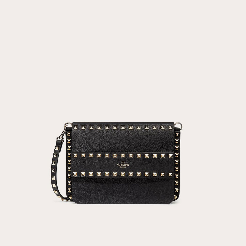 Small Valentino Garavani Rockstud crossbody bag in grainy calfskin leather.