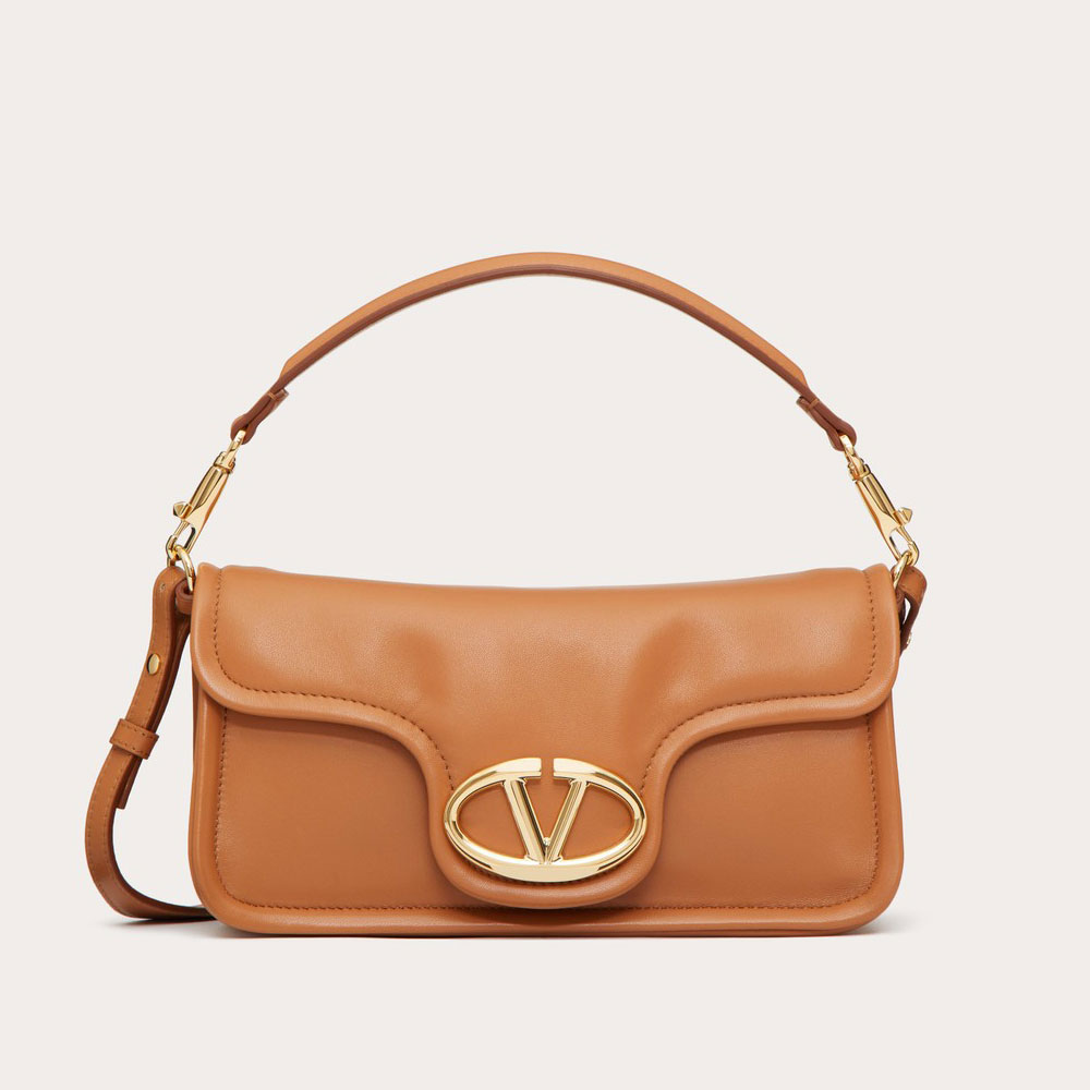 Valentino Garavani Vlogo 1960 nappa leather medium shoulder bag with metallic Vlogo Signature element. The bag can be worn on the shoulder/crossbody or handheld thanks to the removable handle and removable leather shoulder strap.