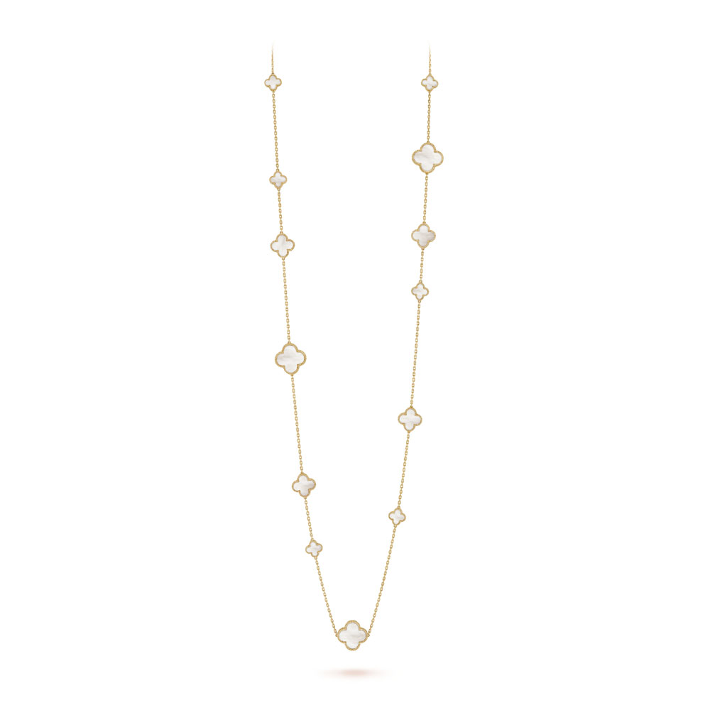 Magic Alhambra long necklace. 16 motifs. 18K yellow gold. white mother-of-pearl.