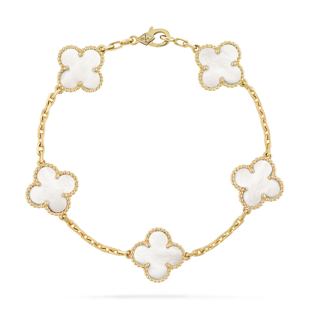 Vintage Alhambra bracelet. 5 motifs. 18K yellow gold. white mother-of-pearl.
