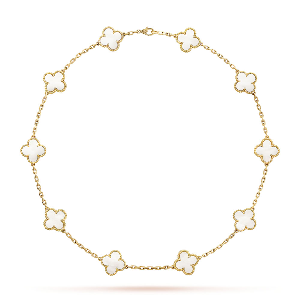 Vintage Alhambra necklace. 10 motifs. 18K yellow gold. white mother-of-pearl.
