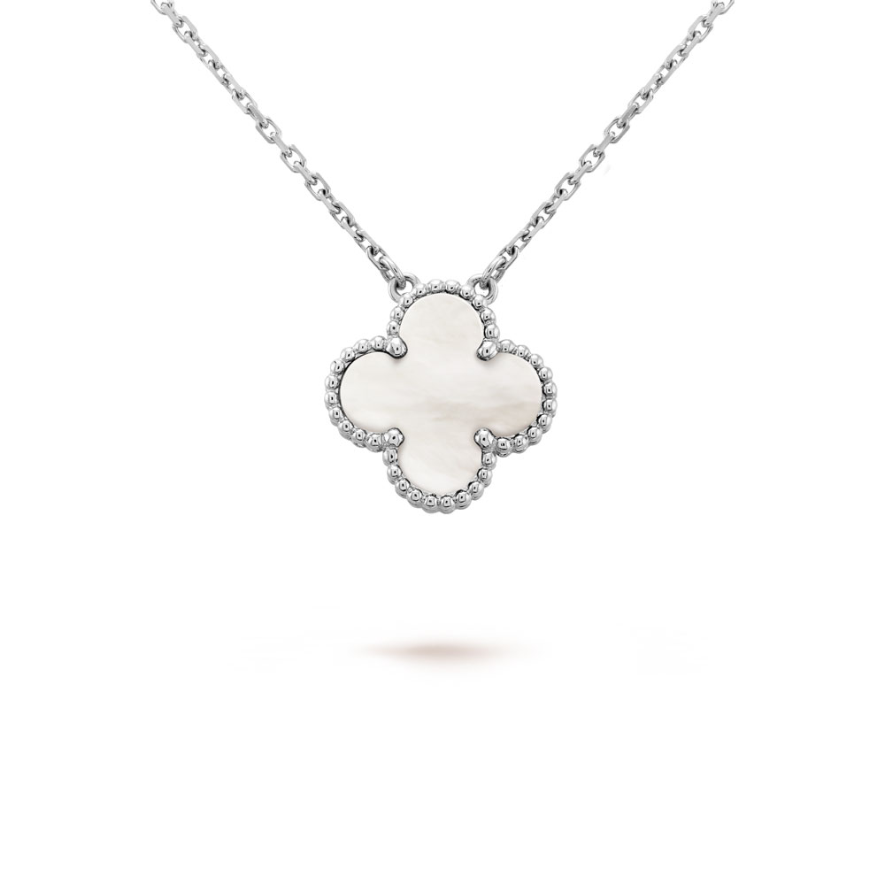 Vintage Alhambra pendant. rhodium plated 18K white gold. white mother-of-pearl.