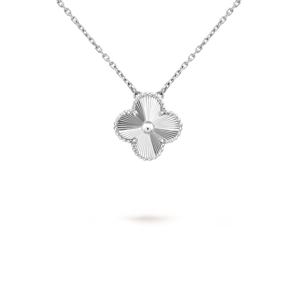 Vintage Alhambra pendant. guilloche rhodium plated 18K white gold.