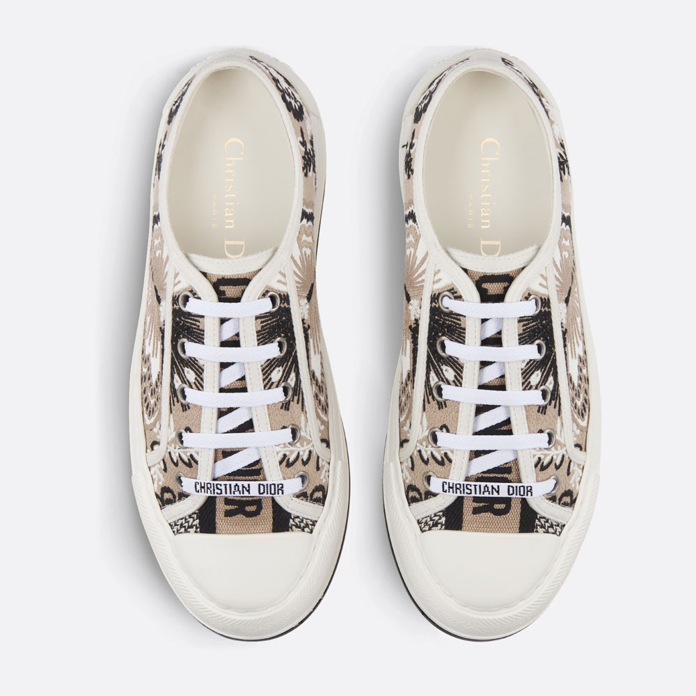 The Walk'n'Dior platform sneaker elevates the line with a modern creation. The embroidered cotton upper features the beige multicolor Butterfly Bandana motif, showcasing the butterfly and timeless bandana pattern in a graphic spirit. The style is completed by a comfortable and ultra-lightweight thick sole, tongue and Christian Dior laces. The sneaker will add a contemporary touch to any laid-back look and will pair with other Butterfly Bandana creations from the collection.