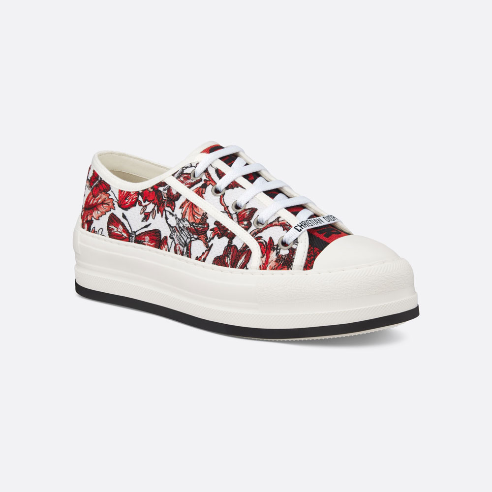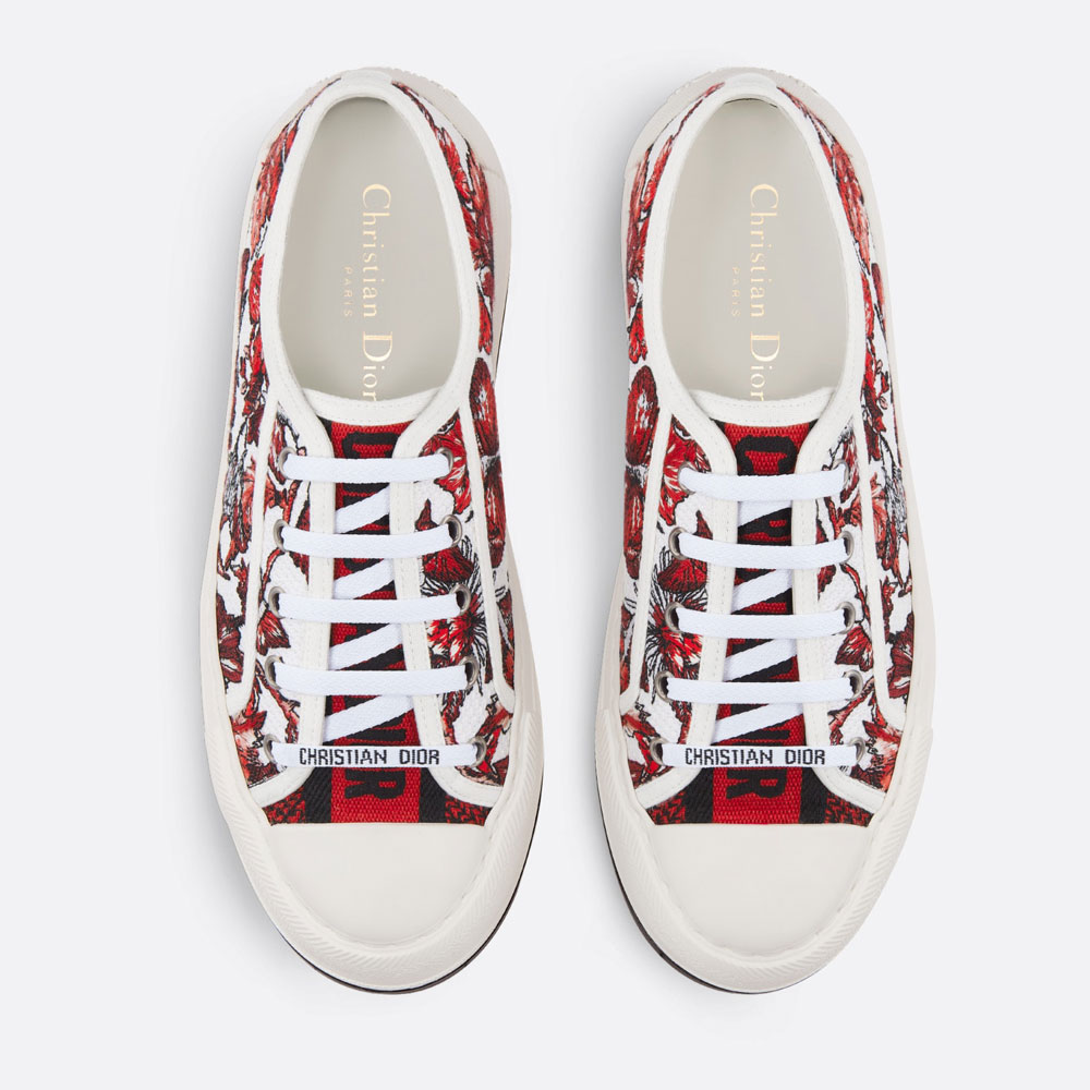 The Walk'n'Dior platform sneaker elevates the line with a modern creation. Celebrating love and romance a la Dior, the embroidered cotton upper features a red and white Le Caeur des Papillons motif by Pietro Ruffo, showcasing a bouquet of flowers and butterflies. The style is completed by a comfortable and ultra-lightweight thick sole, tongue and Christian Dior laces. The sneaker will add a contemporary touch to any laid-back look and will pair with other Le Caeur des Papillons creations from the collection.