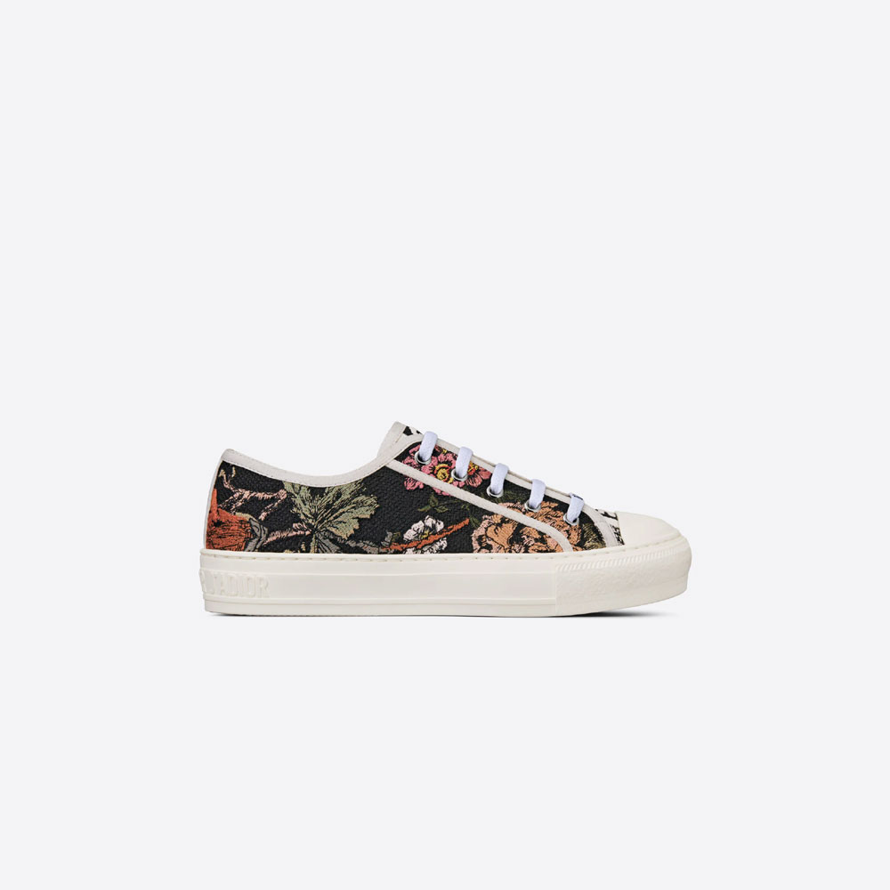 The WalknDior sneaker highlights the Dior Jardin Botanique motif. A romantic floral pattern inspired by the Granville gardens so dear to Mr. Dior. Crafted in black multicolor embroidered cotton.