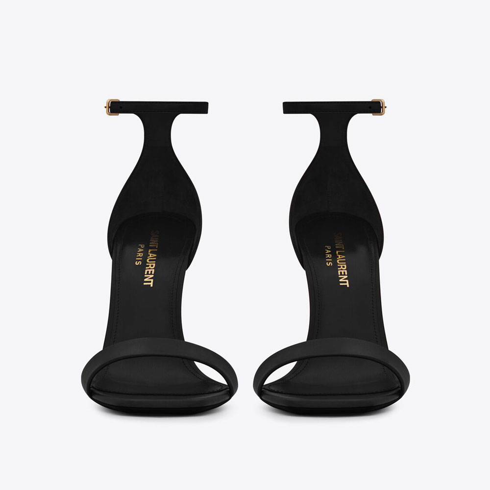 Heeled Sandals With A Strap On The Front A Buckle Ankle Strap And A Slightly Square Toe