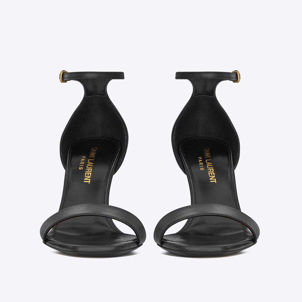 Heeled Sandals With A Strap On The Front A Buckle Ankle Strap And A Slightly Square Toe