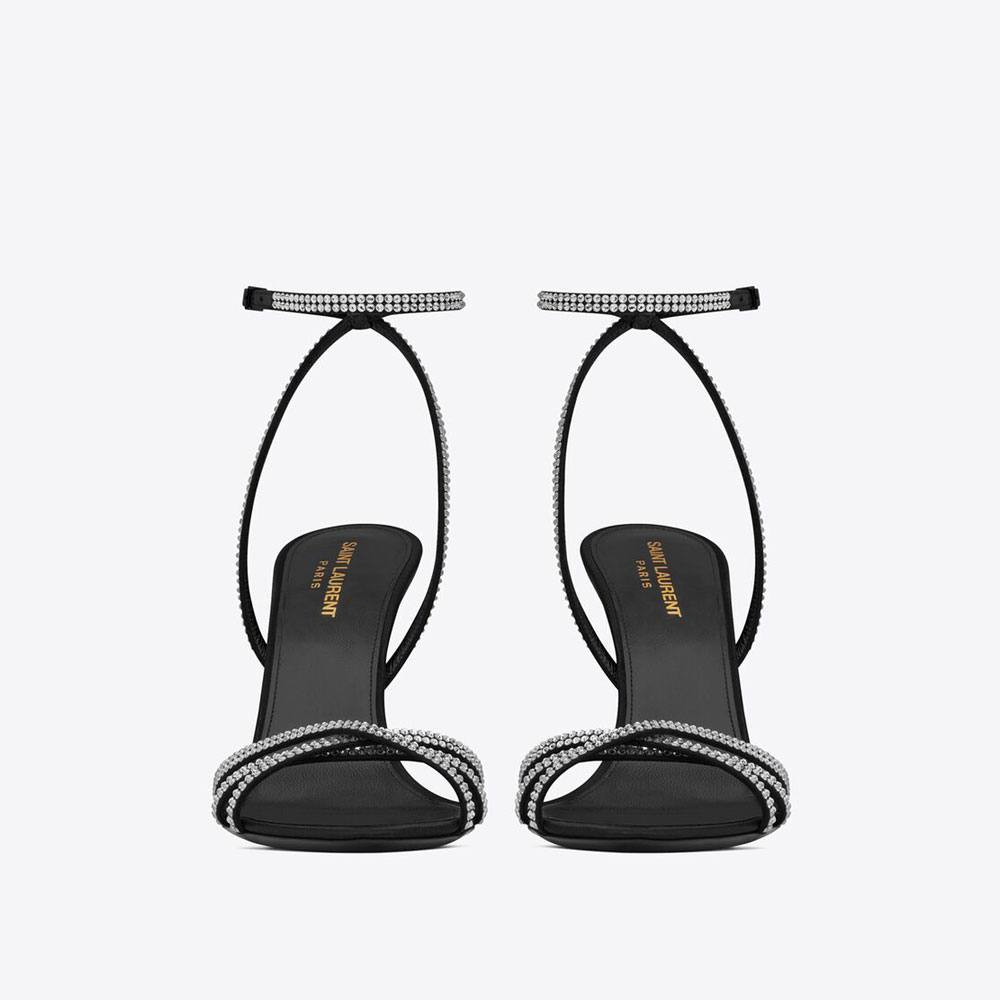 YSL Ava Sandals In Crepe Satin With Rhinestones 731558 1UUAC 1067