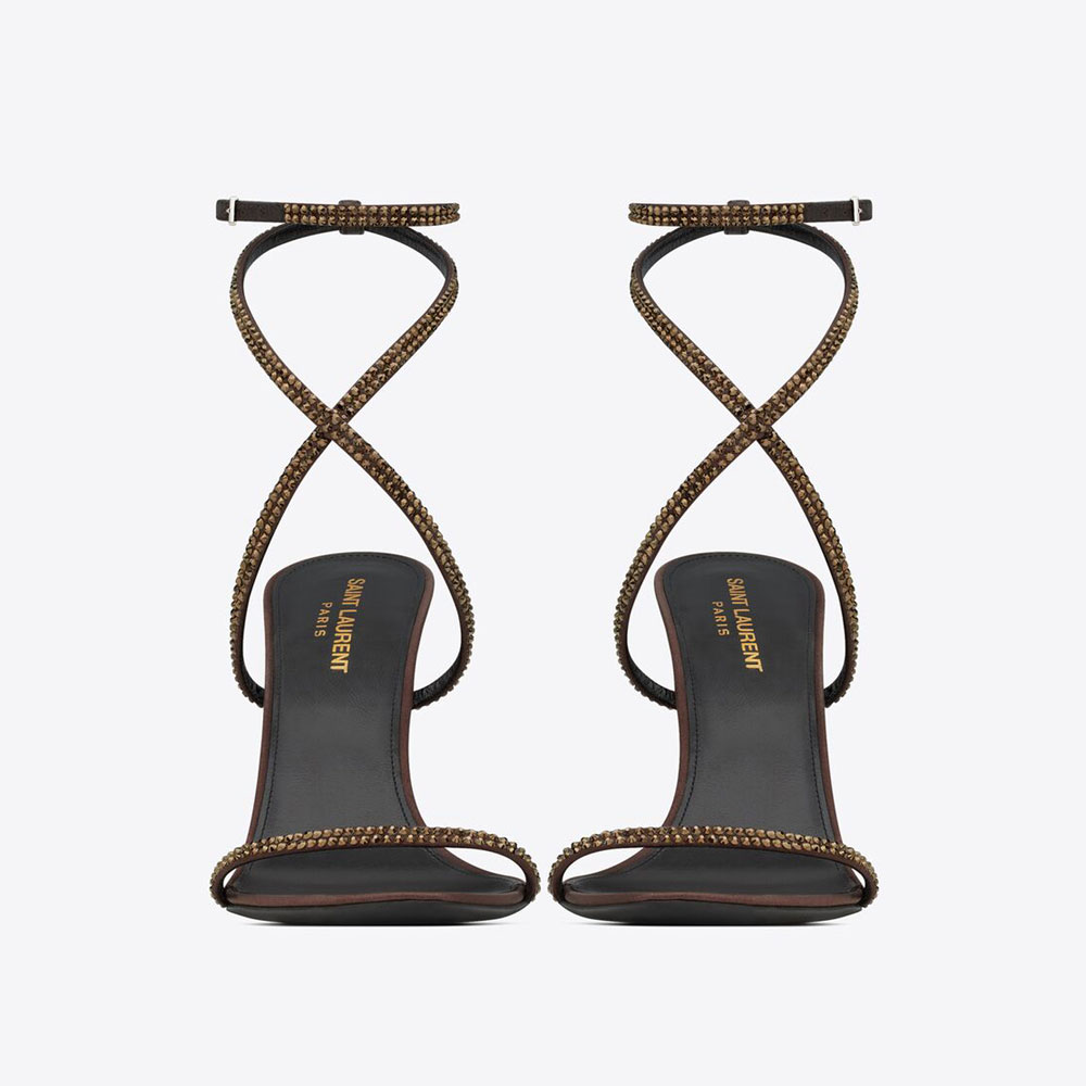 YSL Ava Sandals In Crepe Satin With Rhinestones 731568 1UUAC 6060