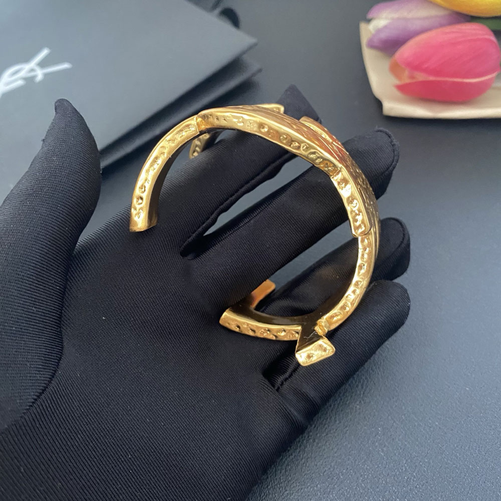 The YSL Cassandre cuff is elegant and eye-catching. The hammered gold finish adds luxury, while the twisted design is unique. A must-have accessory!