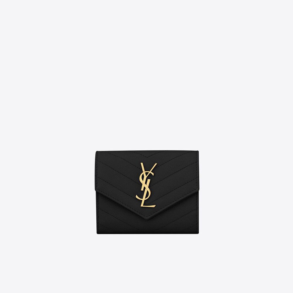 YSL Cassandre Matelasse Compact Tri Fold Wallet Grain De 403943 BOW01 1000
