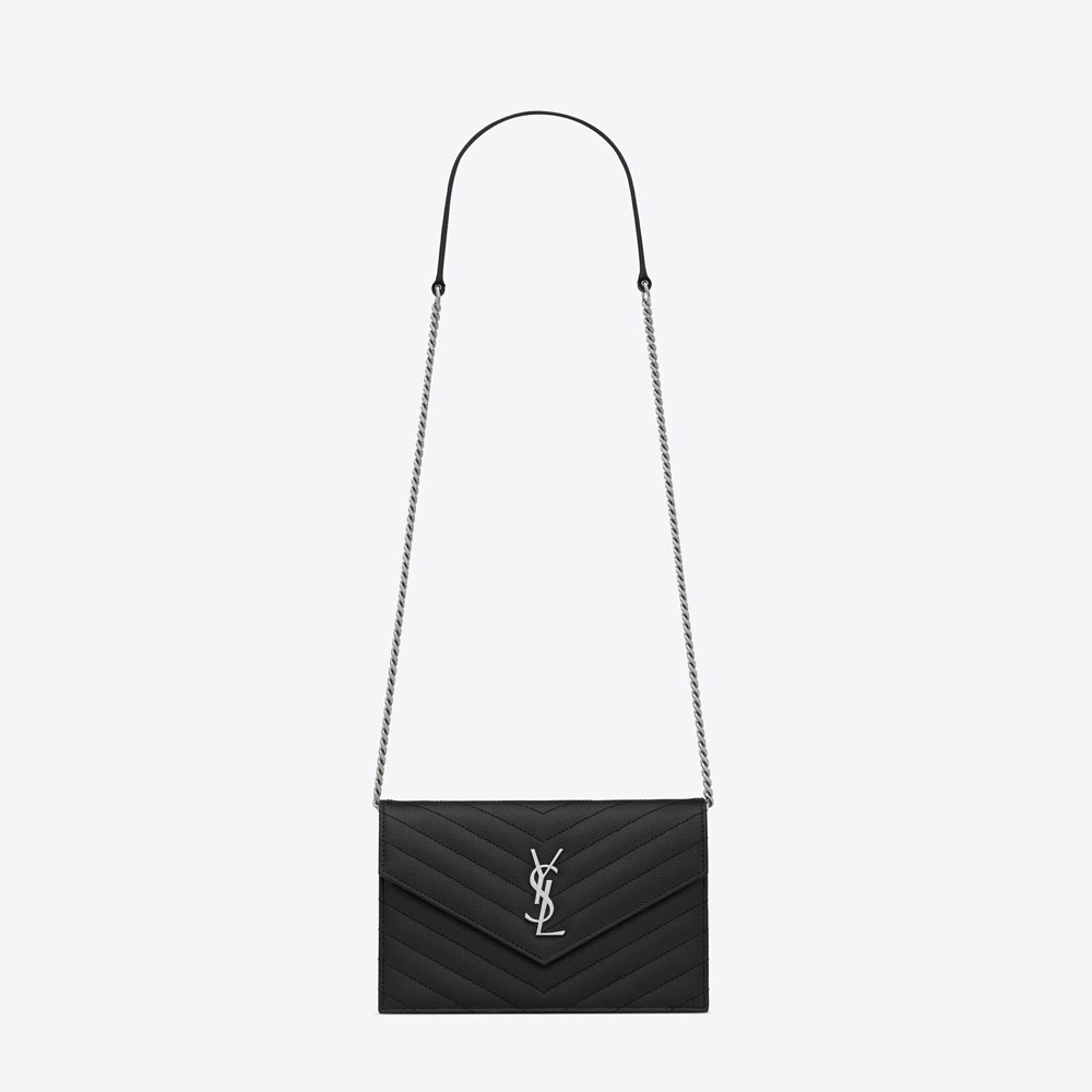 YSL Cassandre Matelasse Envelope Chain Wallet Embossed Leather 742920 BOW02 1000