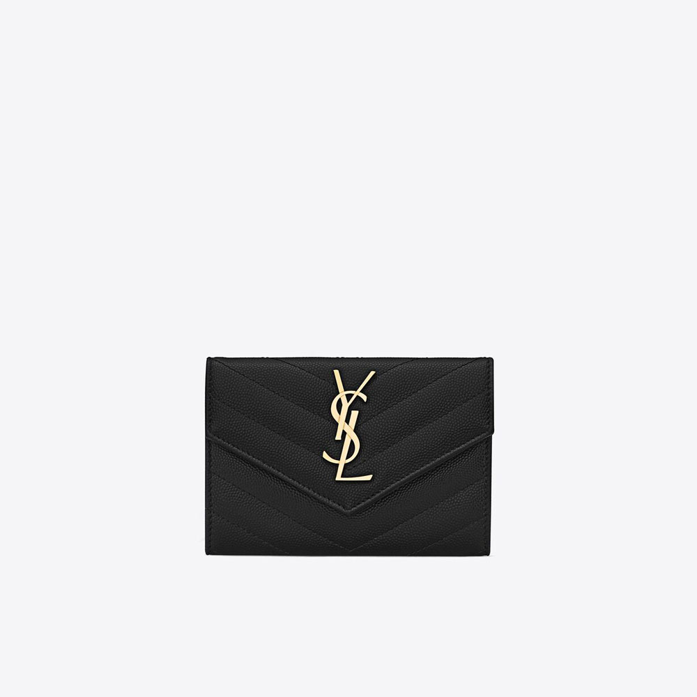 YSL Cassandre Matelasse Small Envelope Wallet In Grain De Poudre 414404 BOW01 1000