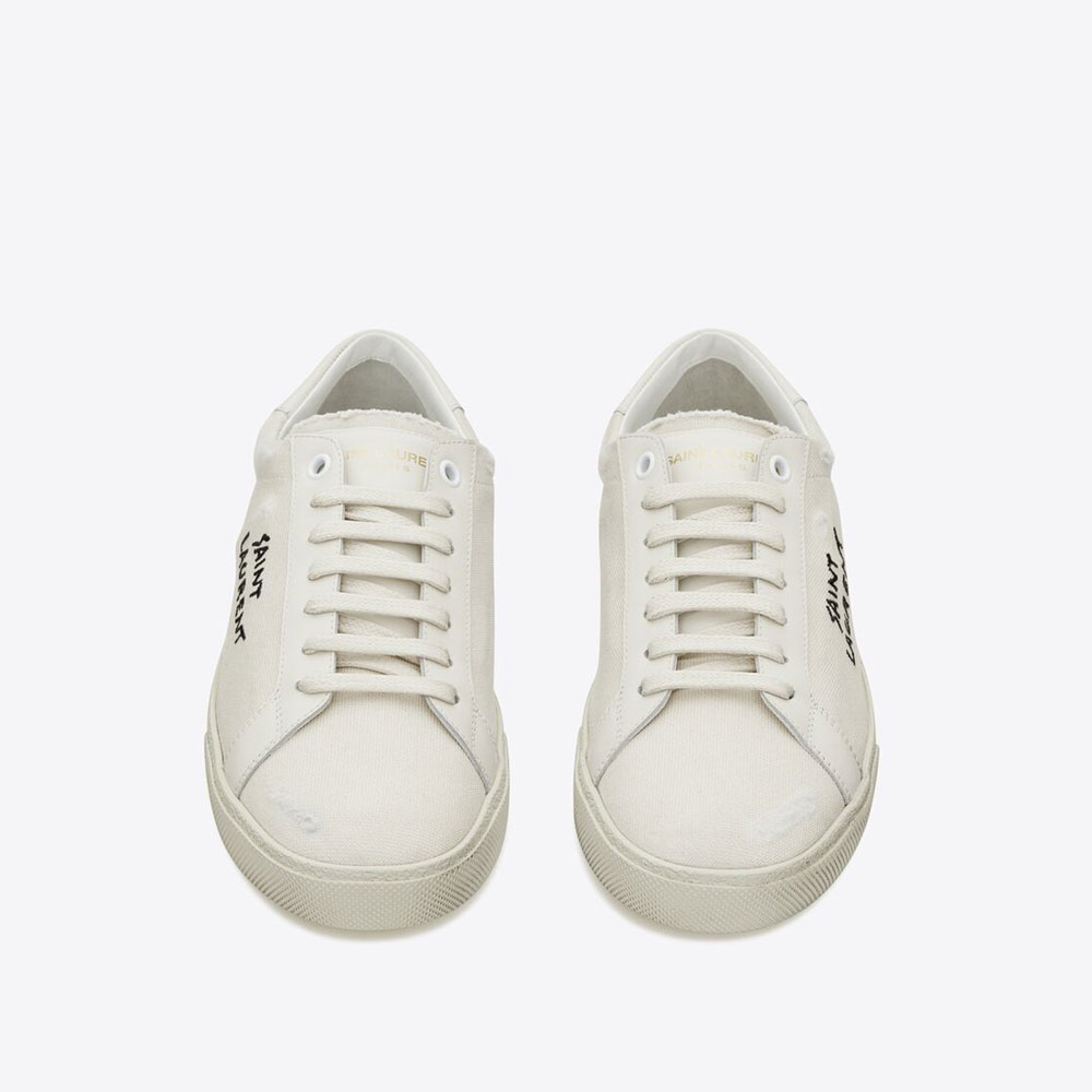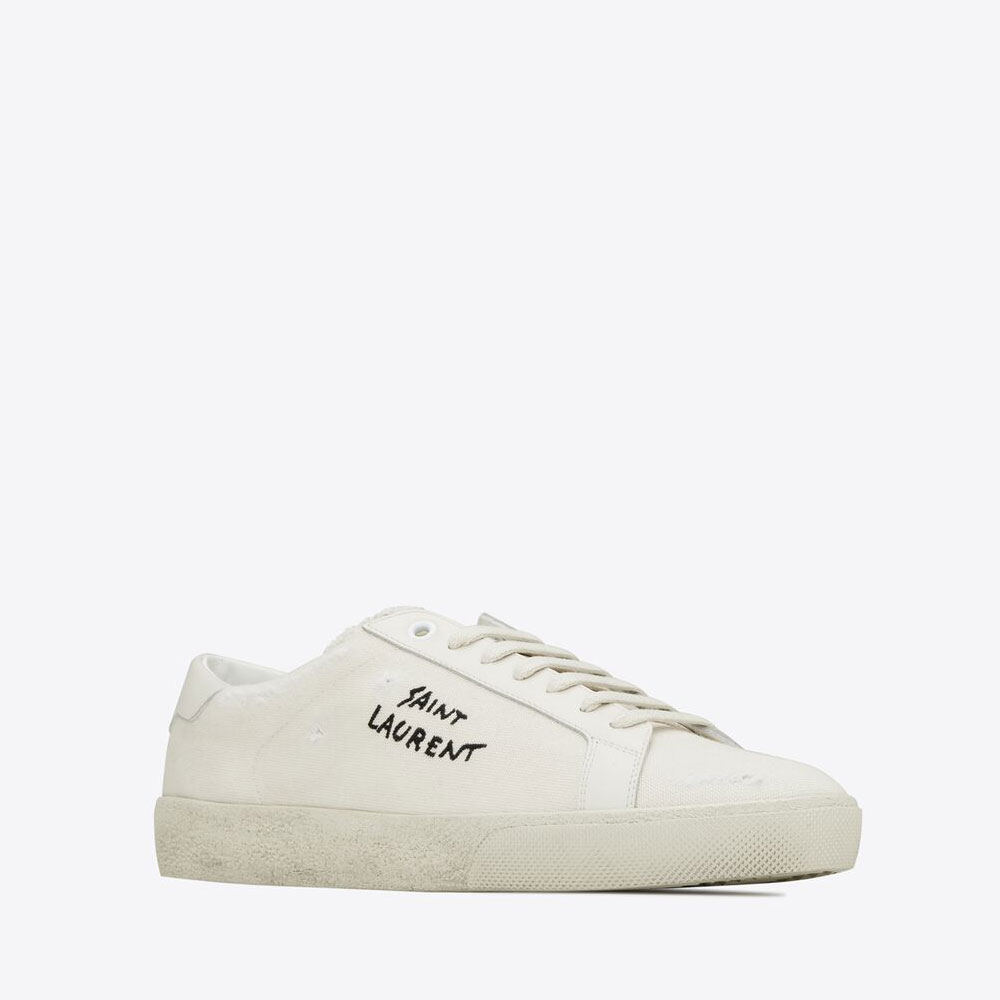 Low-profile Sneakers Made With Distressed Organic Cotton Canvas And Leather Stitched Saint Laurent Along Outer Side And Saint Laurent Signature Embossed Back Tab.