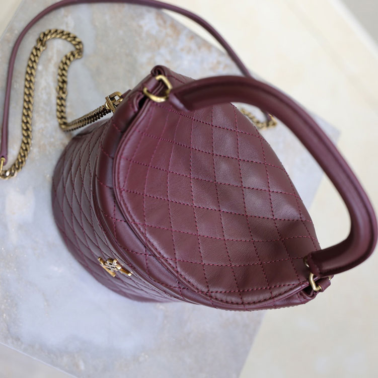 Versatile carrying options come with both a handle and removable leather-chain strap.