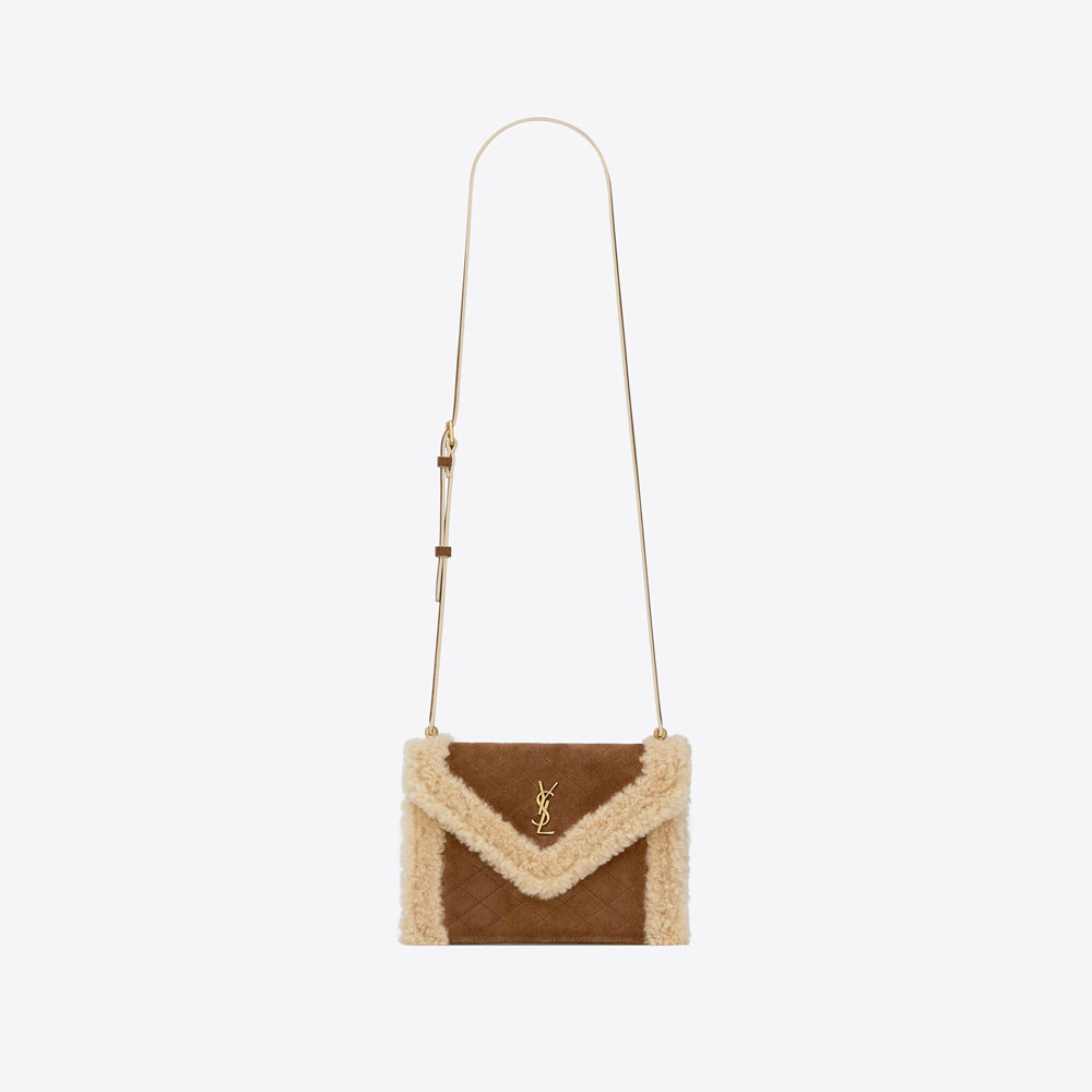 YSL Gaby Mini Satchel In Quilted Suede And Shearling 685574 AAA72 2281