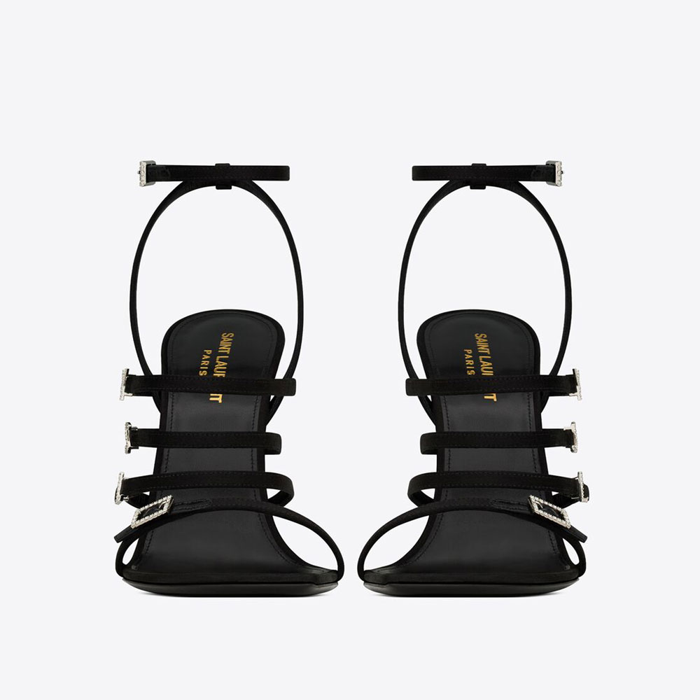 YSL Jerry Sandals In Crepe Satin And Rhinestones 742235 1UU00 1000