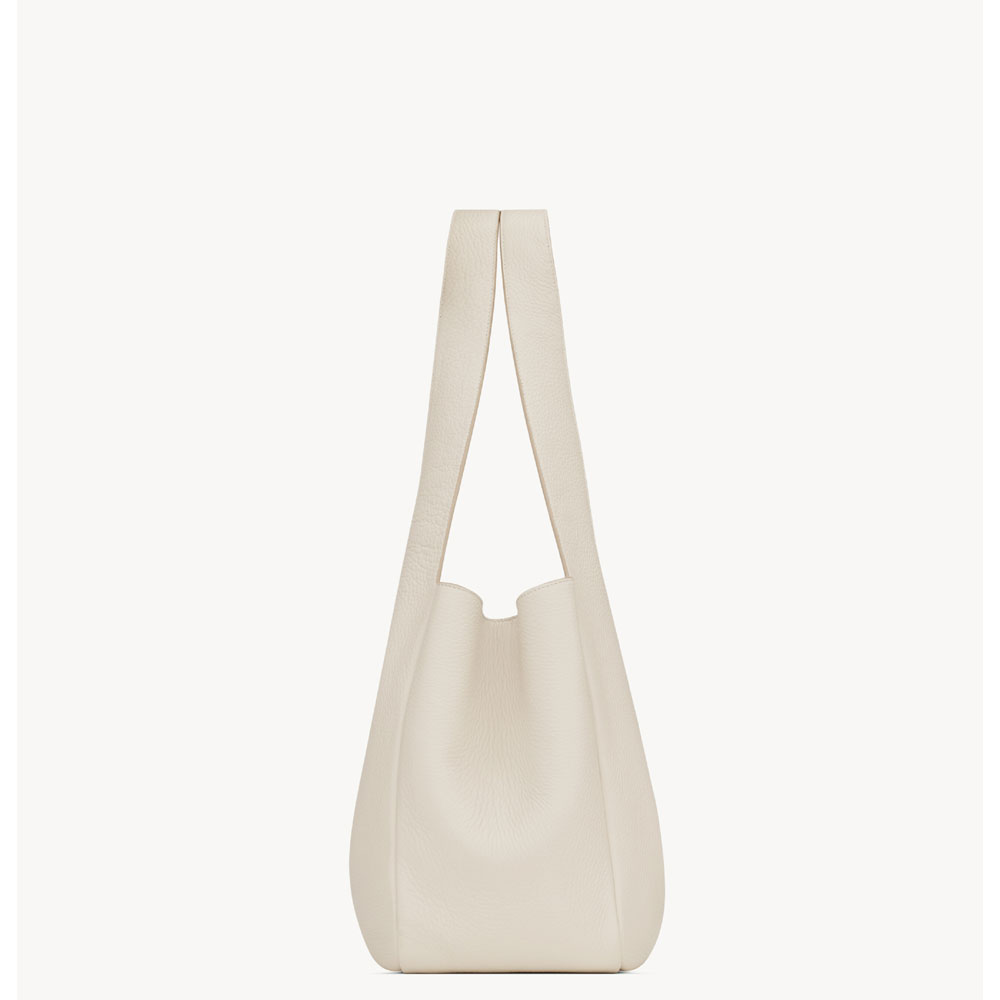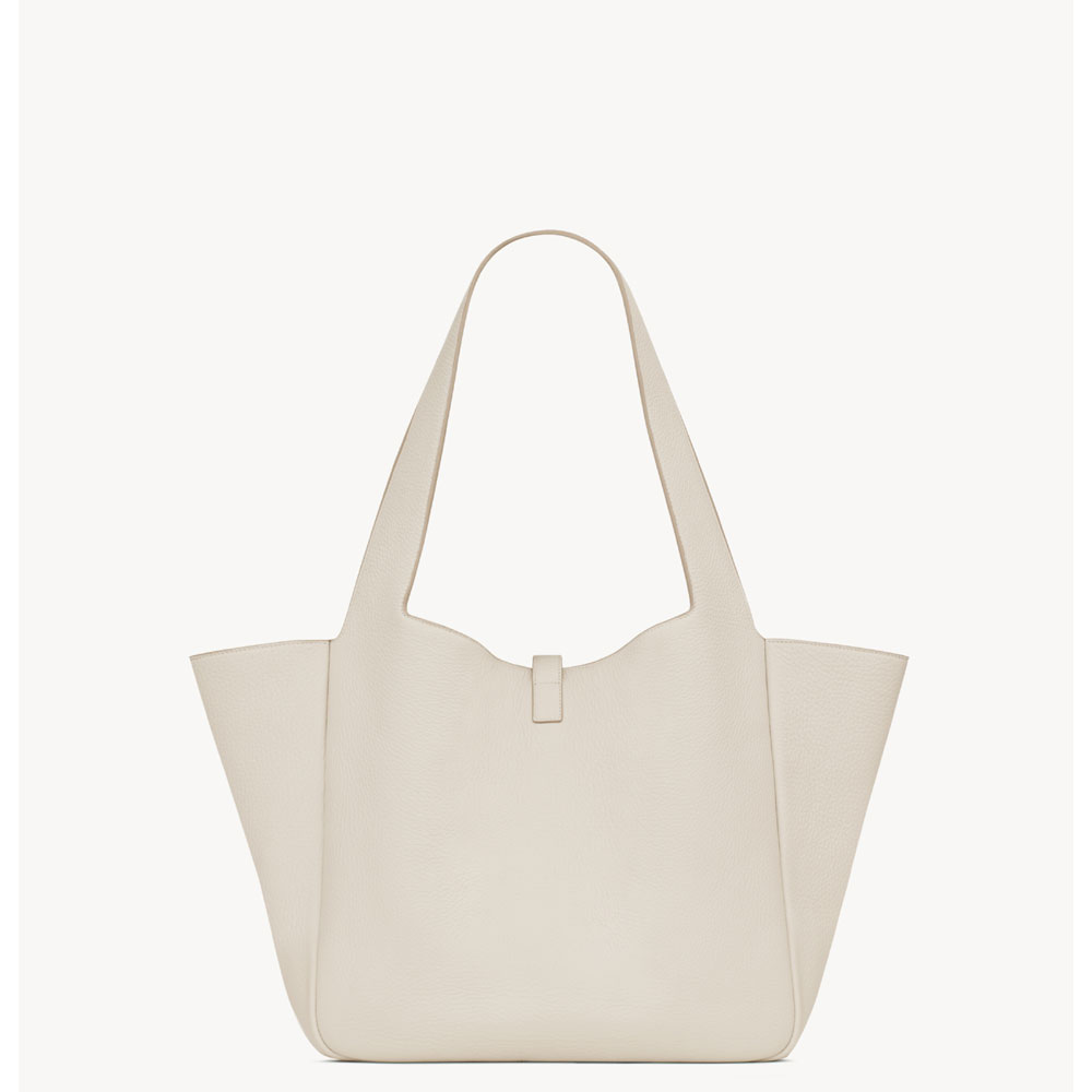 Soft tote crafted from premium grained deer leather. Featuring a sleek zip pocket and elegant leather tab closure adorned with the CASSANDRE.