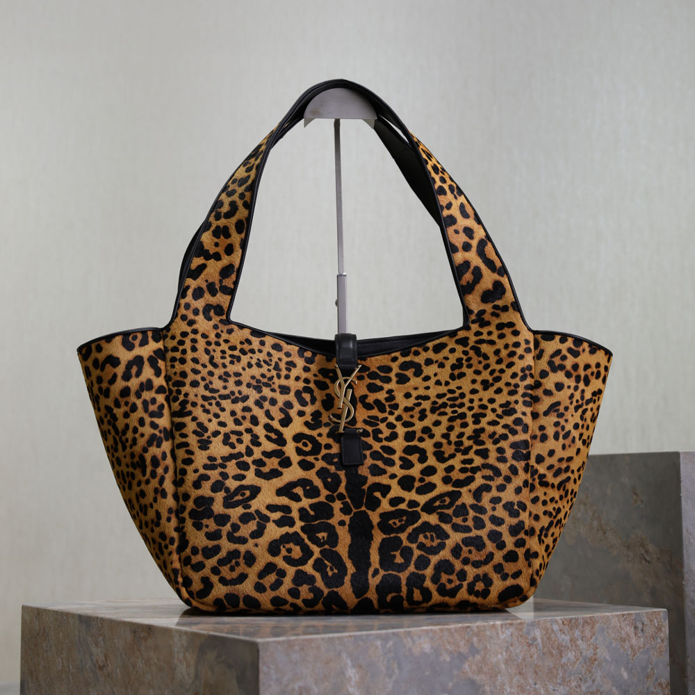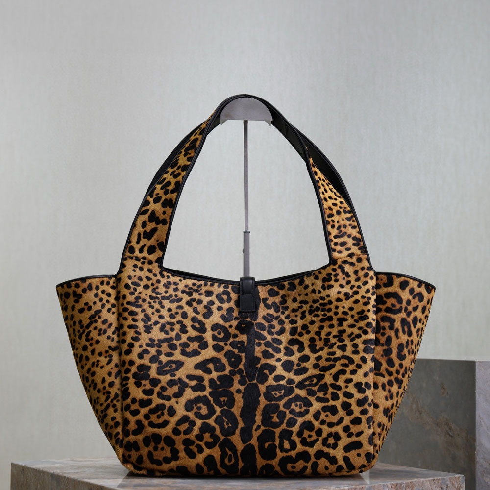 Soft leopard-print pony hair bag crafted with smooth nappa leather.