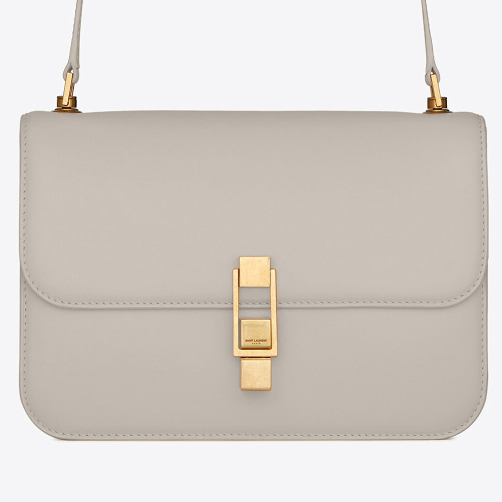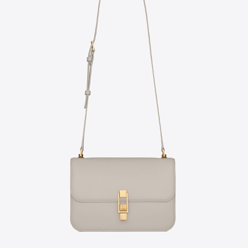 bag with front flap decorated with a saint laurent paris-engraved square clip fastening featuring an adjustable shoulder strap.