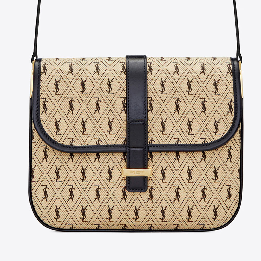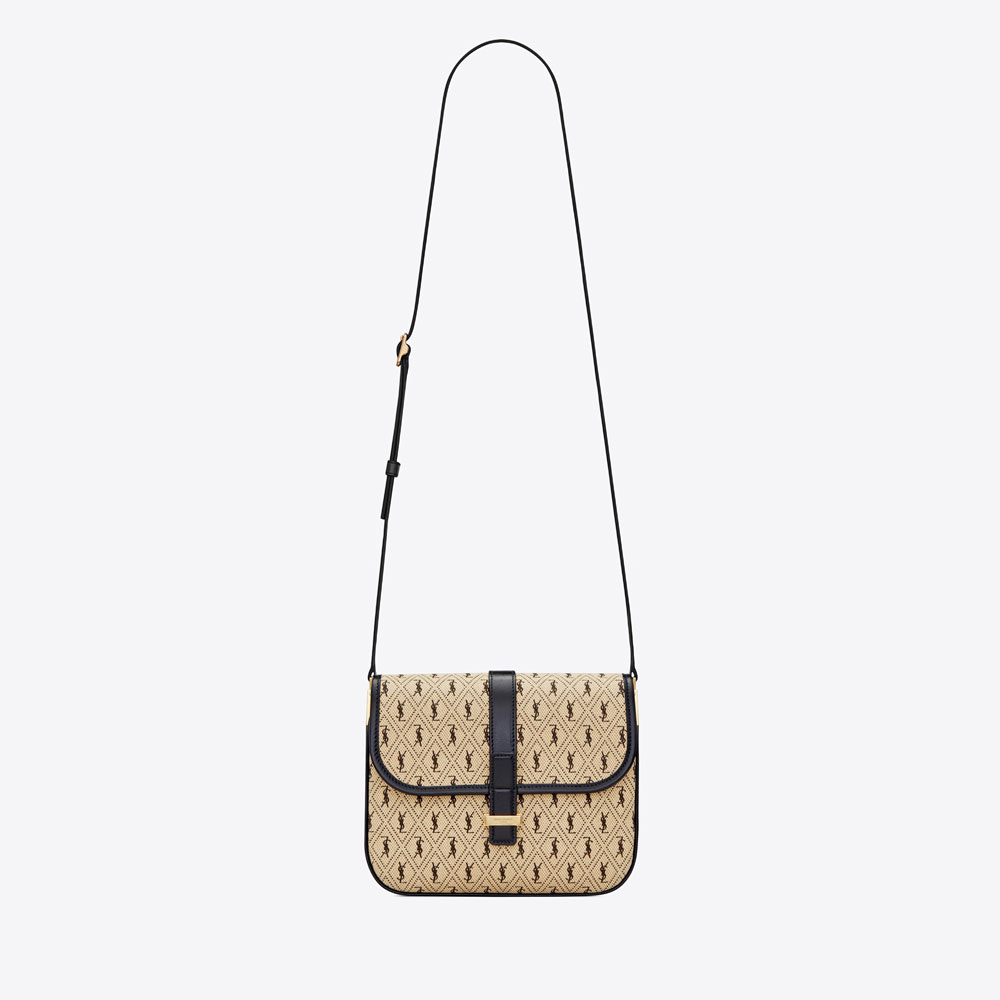 small satchel in monogram canvas with flap closure and an adjustable leather shoulder strap.