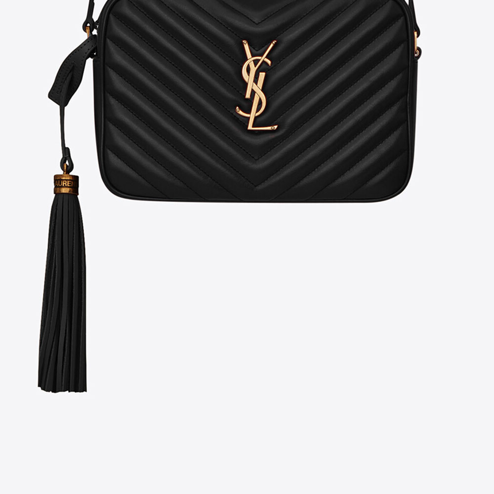 saint laurent monogram shoulder bag featuring an adjustable leather strap removable leather tassel interlaced ysl initials in metal at the center and quilted overstitching. Size:23 x 16 x 6 CM / 9 x 6.2 x 2.3 in