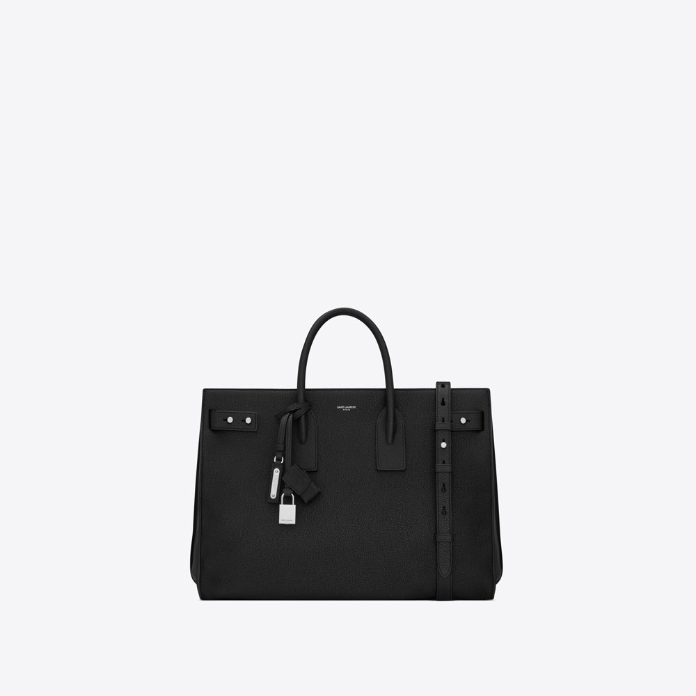 signature saint laurent large bag with a soft construction featuring thin side gussets and compression straps with tabs tubular handles with a removable leather-encased padlock charm and an adjustable and detachable shoulder strap. Size:40 x 30 x 13.5 CM / 15.7 x 11.8 x 5.3 Inches