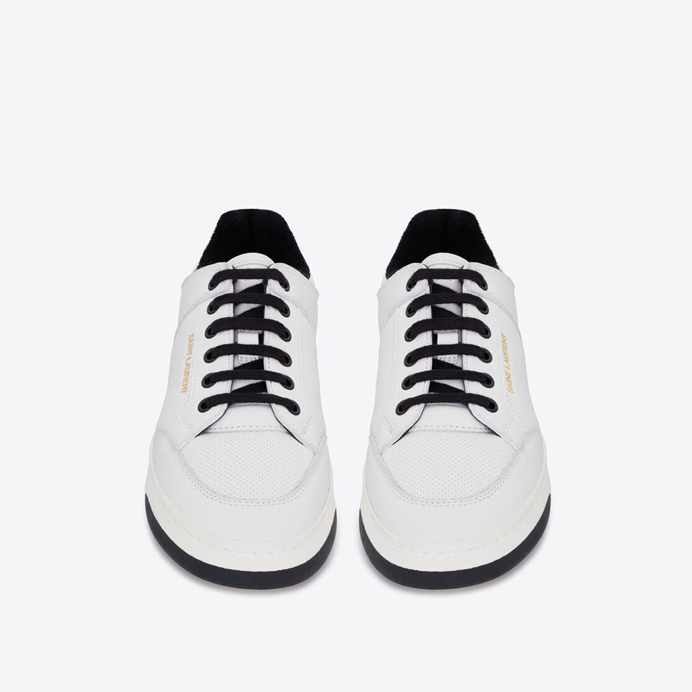 Low-top Laced Sneakers Featuring Perforated Leather On The Front Panel A Gold-tone Saint Laurent Signature Across The Pull Tab And Gold-tone Saint Laurent Signature Along The Side.